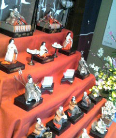 店のショーウインドには、これまた古めかしいけど素敵なお雛様の段飾りが!!(゜∇゜)