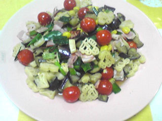 今度はムーミンファミリーパスタで作ったんで、野菜も小さめに刻みました。