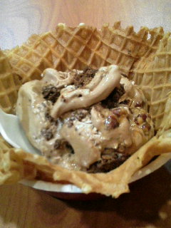ワッフルコーンはデッカイし、パリパリで香ばしくて美味しいんだけどねー。
