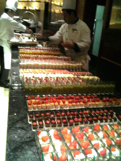 でも、サンドウィッチや点心等の食事系のものも置いてあって、営業時間の3時間半、ずっと食べてOKだから、ランチとディナーを兼ねて食べまくってきたよ〜( ̄▽+ ̄)v