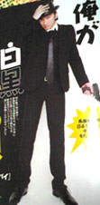ポスターや、看板や、最初の長瀬クンだけのCMや、日テレダベァとのCMでも着てるし、スパイのイメージのスーツなんだろうな。
