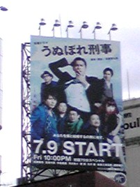 表参道を歩いてる途中の明治神宮前あたり(表参道と明治通りの交差点付近)で、ふと見上げたら『うぬぼれ刑事』の巨大看板を発見\(^▽^)/