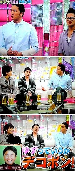 中坊の頃ぽっちゃりしてた北川さんの写真が映し出されて、「ゆずっていうかデコポン!!」とか、当時ドラム担当だった北川さんに「ドラムっぽい」とか言っちゃう長瀬クン(゚m゚*)