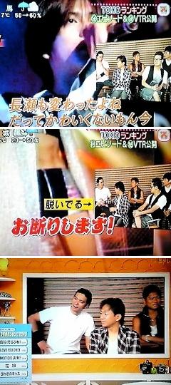 3番組とも同じ日に収録してるから衣装が一緒なんだけど、長瀬クンは白のTシャツにデニムというめっちゃシンプルなファッション。。全身CHALLENGERかなー。