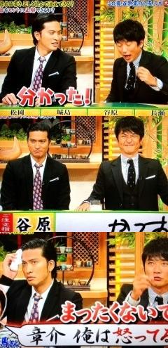 以前、谷原さんが何かの番組で、足が短いのがコンプレックスって言ってたけど、頭身バランスも良いし全然そうは見えないなぁと思ってた。。でも今回、長瀬くんと並んで座ってたら、身長は同じくらいなのに谷原さんの方が座高が高かったんで、ようやく納得(^_-)-☆