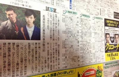 読売新聞のテレビ欄ページの「試写室」が、今日は「クロコーチ」評でした(^.^)ノ