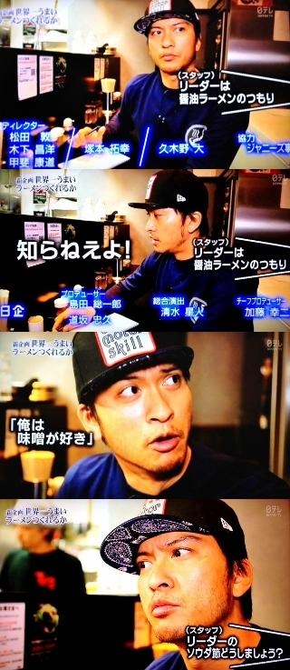 醤油派のリーダー&達也さんがラーメンのために奮闘して、、、番組最後に長瀬クンが登場して、、、リーダーに反抗期の長瀬っていう流れも、お約束だけど可愛くておもしろ~い( ̄w ̄)