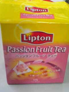 仕事中、お菓子を食べながらこのパッションフルーツティーか、ローズヒップティーをホットでいただきます(*´З`)