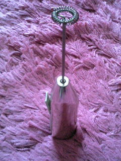 コーヒーとスキムミルク(コーヒーの2倍)に、お湯を注ぎ、コレでぶ〜んとかき回す! 素晴らしい\(^▽^)/ たっぷりと泡立ちます!