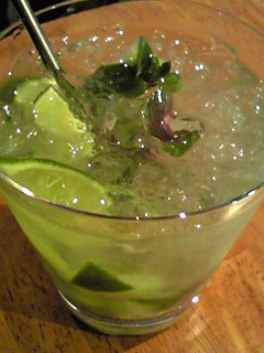 (笑)ラムベースで、ざく切りのライムとミントの葉がグラスにたっぷり入ってて、フルーツパンチ的