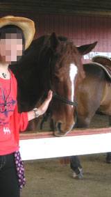 (笑)必死で手綱を引っぱり、足で腹を蹴ってもなかなか草から離れない・・