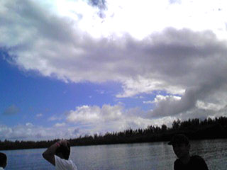 池といっても湖くらい広くて、カヌーみたいなボートでのクルーズ。いきなり雨が降り出して、かなり濡れたけど、南国だから問題ナシ