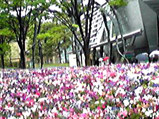 してダベってたら、花壇の色合いが春っぽくて凄ぉぉ〜〜くキレイだったので、写メ