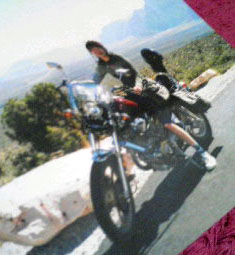 ラスヴェガスからレッドロック・キャニオンへと4駆で行った時、岩山の頂上あたりにハーレーで登って来てるアメリカ人バイカーが何人も居たのね。その中に、孫娘を後ろに乗せて来てるおじいちゃんが居て、ちょっと仲良くなったんですよ〜ん♪(旅先での私はともて気さく(笑))