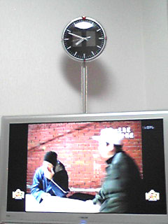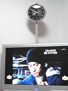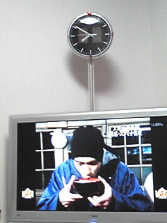 Woooの後ろの物体(笑)は、クロック・スタンドに引っ掛けた電波ソーラー時計。