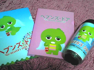 グッズも買い足しました〜〜。[ヘブンズ・ドア×ガチャピン] コラボのタンブラーとクリアファイルです。。カワユスですなぁ