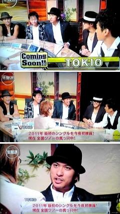 トークは真面目な感じでインパクトには欠けたけど、短い時間で要点は言ったって感じかな。。今はツアー中で福島から武道館に被災者を招待したことや、リーダーが舞台をやることが話題になって、、太一君の「セイント星矢以来?」ってツッコミが笑えた。。中居君もTOKIOもウケてたね(*≧m≦*)
