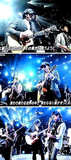 歌は、額縁の中に居るTOKIOからスタートだったけど、そのせいかギター3人の立ち位置が狭い感がしたな。。今回の演出はPVやジャケ写の雰囲気に合わせたんだねー(*´∀`)b