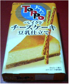 さて、大人のトッポ <ベイクドチーズケーキ豆乳仕立て> をついに購入〜。仕事の合間にポリポリやってます。