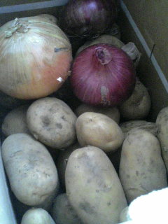 母が趣味で作ってるジャガイモや玉ネギも!! 多謝っす!!!