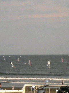 [江ノ島]の上から。/磯にも行った。/海にはウンドサーファーだらけ!