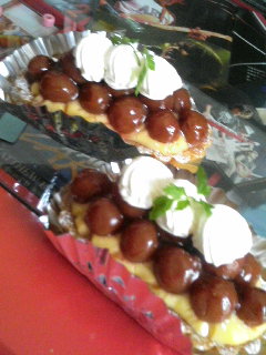 時間がもったいないので、ひたすらDVDを見続けて、見ながら飲み食いしてたんだけど、唯一優雅だったのが、この "チェリータルト"(←欧米か!?)