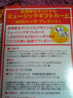 長瀬のレア・グッズで販促してるということは、“長瀬智也に商品価値アリ!”と、踏んでる証だネ(´艸`)