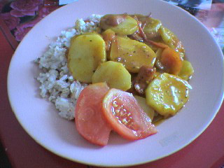 今夜は、じゃがいもたっぷりの「じゃがトマカレー」を作りました!