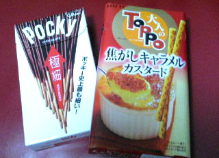 ちょ〜〜〜ウマそうな【大人のToppo焦しキャラメルスタード】と【極細ポッキー】を購入しやした〜♪