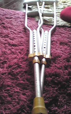 この松葉杖じゃ長さが足りないわねぇ」と言ってロングサイズの杖を出して来て、更に金具を調節して伸ばしてくれました(笑)「あなた運動神経が良さそうだからすぐに慣れるわよ」と。。